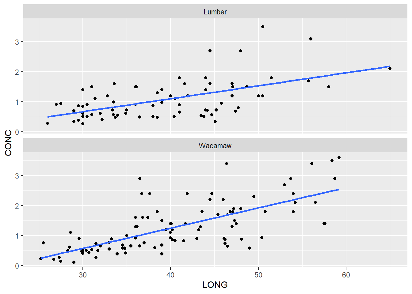 #> lm(formula = CONC ~ LONG, data = mercurio_lumber)